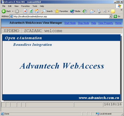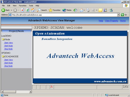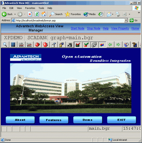 Main Graphic is a user built display and yours may look different. The Main Graphic in the Advantech WebAccess Live Demo (http://www.advantech.com.cn/eAutomation/WebAccess/index.asp) is shown below.